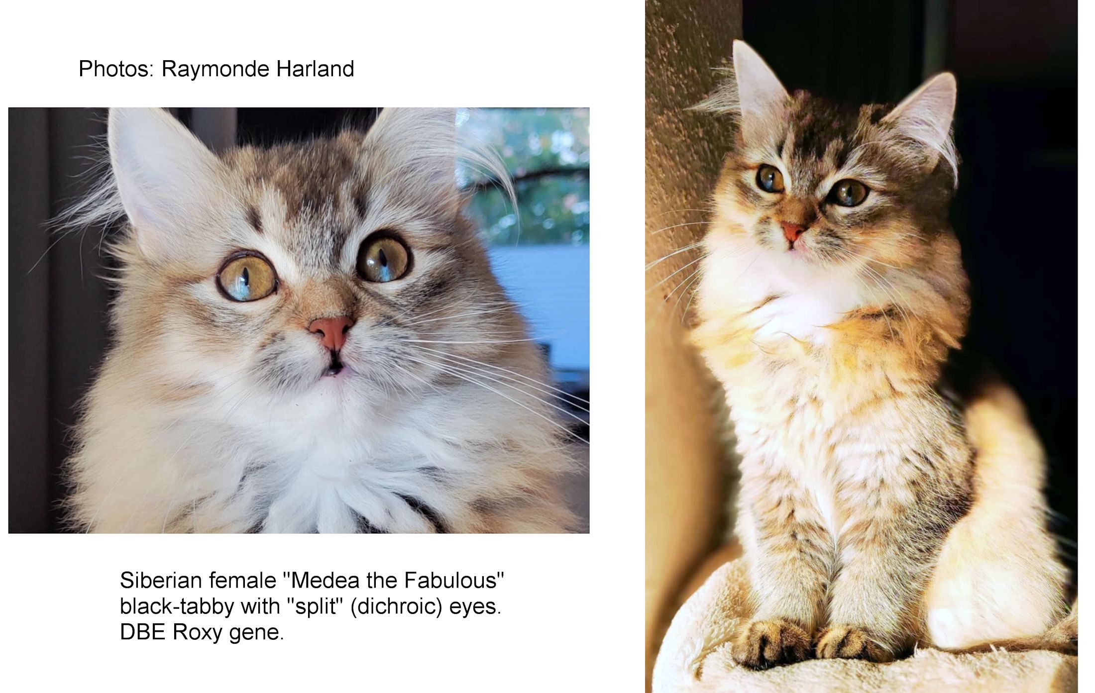Initially this gene was confined to the Siberian breed, but in 2017, Malvina's granddaughter, an odd-eyed cat called Velvet Slavicat, was used in other DBE breeding programmes.