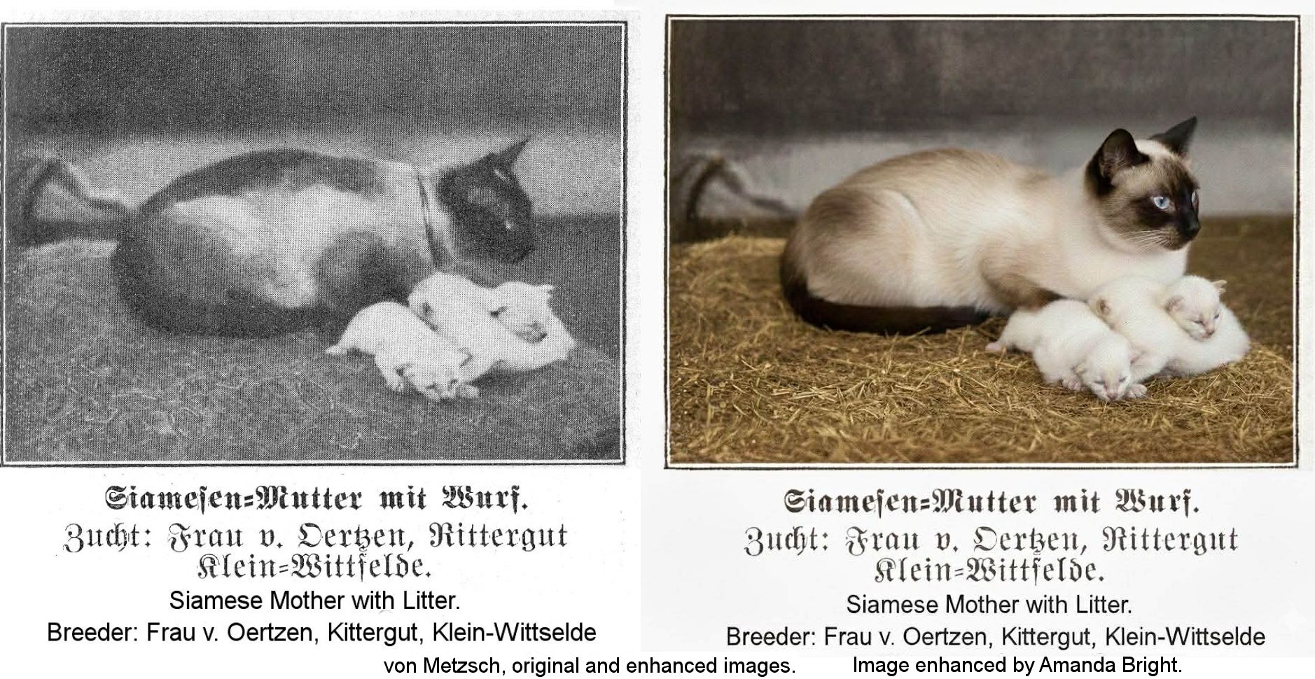 There is the following observation of interest to breeders: "A particular peculiarity of this rare breed is the biologically still unexplained knot at the end of some specimens tails." The observation concludes thus: "If I look into the clear eyes of my Siamese cat, all sorts of enigmas seem to me to be hidden in them. There is melancholy and passion in the depth of those animated gemstones, and ancient oriental fairy tales come to mind."