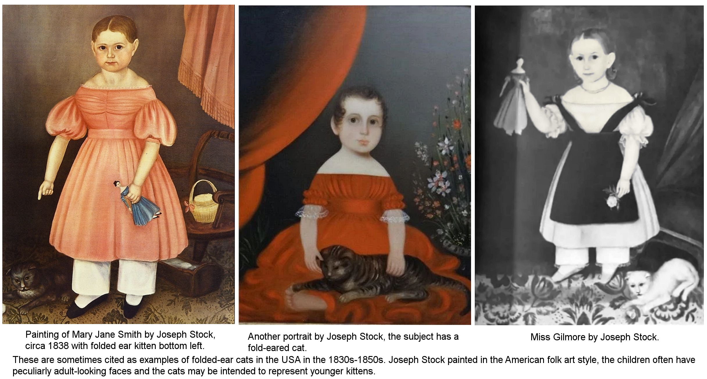 Cats with folded ears have been reported in the Hebrides, Germany and Belgium, but were apparently regarded as no more than isolated curiosities and not bred.