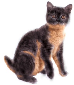 Colour-and-tan appears to be an allele of tabby, but the variety is too recently re-emerged for the exact relationship to tabby and to agouti to be clear. The inheritance of black, blue, chocolate and lilac are in accordance with known principles. The dilution gene works on both component colours, but less so on the tan of the underpart than on the colour of the upper part of the cat.