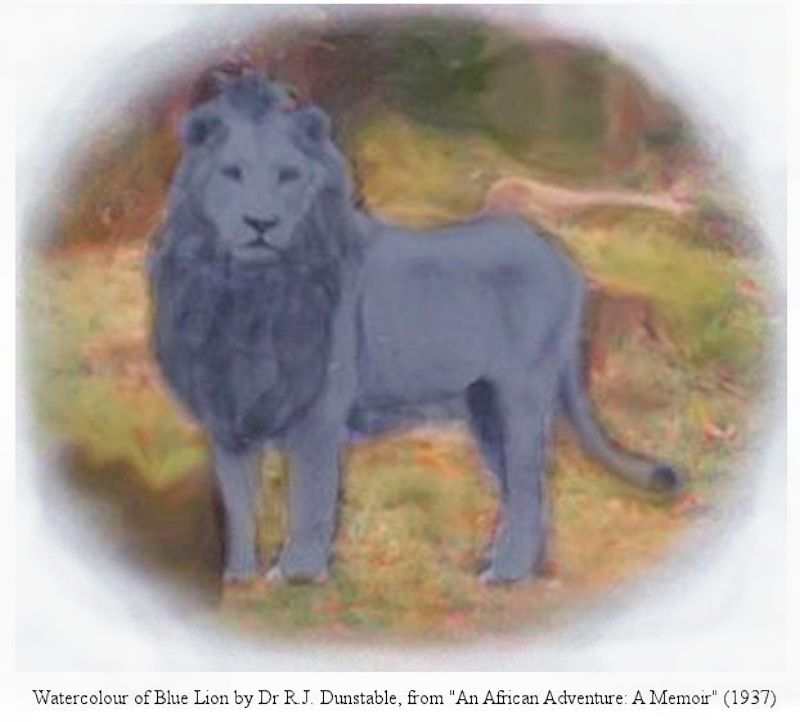 It is worth noting that the existence of the maltese lions has a comparable situation in India where a maltese race of the Royal Bengal tiger exists alongside the normal orange race. The two kinds are said to breed with each other, but while an orange tigress may, if native word is to be believed, be found with grey cubs, never yet has a grey tigress been seen with orange cubs. In general, the blue form appears to be found in deeper forest where its darker colouration perhaps affords it better camouflage, while the orange form may be found in heavy brush or in mixed forest. It is no great surprise that both of these noble big cats, the African lion and the Indian tiger, have both tawny and grey races. A further parallel may be found with the situation of the Indian leopard, which has both spotted and black sub-races, although its African cousin appears to lack a black sub-race, and again with the ferocious South American leopard, or jaguar, which again has both spotted and black forms. As to why the lion and the tiger should both have blue, rather than black, races, is a question that may perhaps be answered on provision of either specimens or skins to the Royal Zoological Society.
