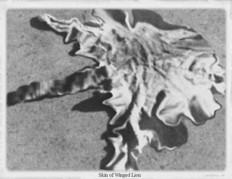 The appendages appeared to cause some distress to the beast by becoming ensnared on thorns and similar obstacles. The villagers believe the exertions of the lion in effecting its escape from such entanglements have cause the further enlargement of the wings by stretching. Further to the unnatural wings, the animals visage is most un-lion-like. Both upper and lower lip are unusually pendulous and, in profile, give the distinct impression of a beak. Due to its combining the aspects of both lion and bird, the villagers call it "eagle-lion" or "bird-lion" which might provide an explanation of the "gryphon" in classical literature.