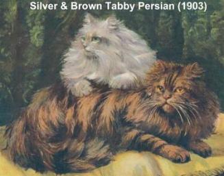 The origin of the Chinchilla Persian was a female cat called Chinnie, born in 1882 when Silver Tabbies and Black Smokes were already familiar. Chinnie may have been a Silver Mackerel or Spotted Tabby Longhair with weak markings diffused by her long hair. Her weak markings would be considered heavy by modern standards. Her exact ancestry is unknown though it includes prize winning grandparents on one side and a stray tomcat on the other. She was unusual enough for interested parties to want to breed similar cats from her. She was mated to Fluffy I, a prize-winner of unknown parentage, who was a "very pure Silver with undecided tabby markings" (probably Chinchilla). One of their descendants, Beauty, was mated to a Smoke and produced the first recognisable Chinchilla, Champion Silver Lambkin. Beauty s descendants were mated to blues, silver tabbies and others, hence blotched tabby, mackerel tabby and dilution were present in the gene pool from the beginning. The Chinchilla was recognised for exhibition in its own class in 1894. Early Chinchillas had a range of levels of tipping and there was confusion as to how much tipping was ideal. Orange eyes were preferred and in 1895, "Fur and Feather" carried an article regarding a green-eyed Chinchilla, "It is useless to think of exhibiting her on account of her green eyes". Green eyes later became a defining feature of Chinchillas.