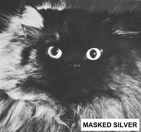 These resemble the Shaded Silver except for the dark mask and dark legs. This was regarded as either a "light" Black Smoke or a sub-type of Shaded Silver. Several Masked Silver Persians were bred from Shaded Silvers. They differed from shaded silvers because on the face and legs the top-colour extended further along the hair shaft. The pattern did not breed true and the Masked Silver died out. Many kittens that initially appear to be Masked Silvers are actually solid colour cats with "fever coat" (a grey or mottled coat caused by the warm temperatures in the womb) and lose their pale coat at the first moult.