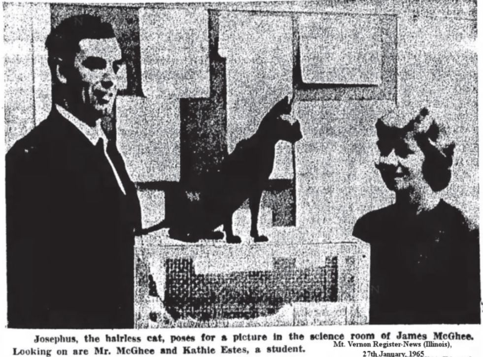 Another hairless cat to achieve local fame was Josephus, who was described in the Mt. Vernon Register-News (Illinois) on 27th January, 1965: