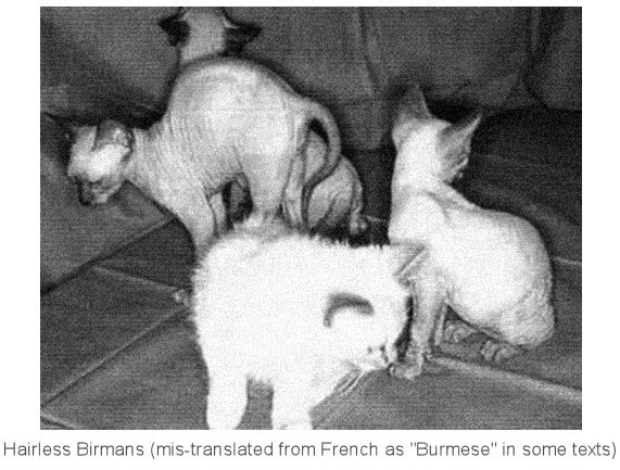 In 1986 in France and then in 1994 in Switzerland, further hairless Birmans were born and were studied at the Alfort School of Veterinary Medicine, France. ]
