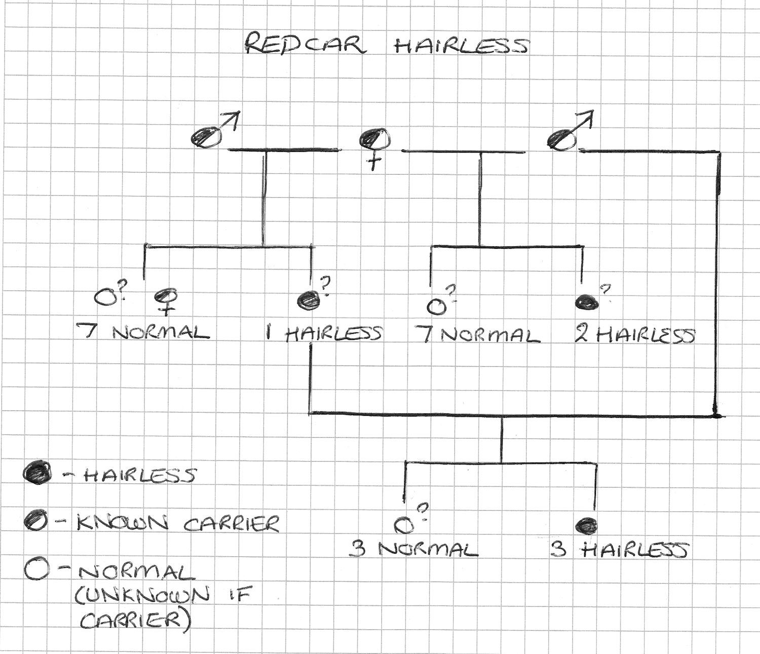 In 1984, the Journal of Heredity reported hairlessness in 10 Birman kittens born in England between 1978-1982. The hairless Birman kittens had short or absent whiskers and greasy skin. None survived beyond ten weeks of age, dying from various disease processes (possibly a metabolic or immune system disorder). This type of hairlessness was already associated with a lethal gene following a study in 1981. The hairless kittens were observed by a breeder in 1977 in Redcar, Cleveland, UK in litters of pedigree Birmans with no previous history of hairlessness in the pedigrees. The stud was somewhat inbred, but this was not unusual for the breed. The female was mated to 2 different, but related males. The first stud fathered 7 normal and 1 hairless kitten. The second stud fathered 7 normal and 2 hairless kittens. A normal-furred female from the first pairing was mated to the second male and produced 3 normal and 3 hairless kittens. The 17 normal and 6 hairless kittens was consistent with a recessive mutation. When mated to an unrelated Siamese male, the original female Birman produced normal kittens. The condition was lethal with death usually occurring before 2 weeks of age. Affected kittens never grow more than a fine coating of down. Based on the longest surviving cat (a male, died aged 3 months), the skin is soft at birth but steadily becomes thickened and wrinkled. The few whiskers present are short, thin and crinkled. In the kittens that died before 2 weeks, there was also a brownish secretion accumulating around the nostrils and eyes, and under the chin (believed to be a secondary bacterial infection). A male Redcar hairless that survived to 3 months had defective, easily split claws. It died suddenly of no obvious cause, but had suffered persistent diarrhoea since weaning. This male had been completely hairless from birth apart from a few short, bent whiskers.