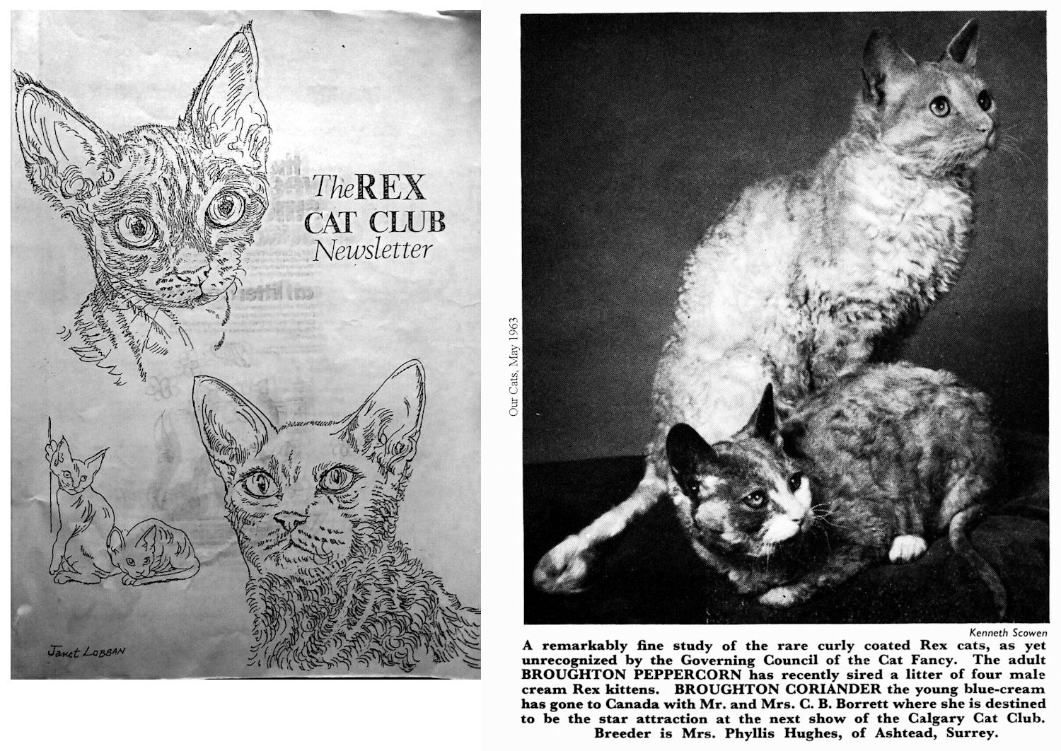 "When I first wrote about the Rex cats in 1962 I had quite a few letters from folk who claimed to have seen cats with curly coats. One came from a reader in Limerick who said she had seen a curly cat on her father s farm, but when I asked her to give more precise information she seemed unwilling to do so, so the idea of an Irish Rex was dropped from the picture." May Eustace, The World of Show Cats (1970)