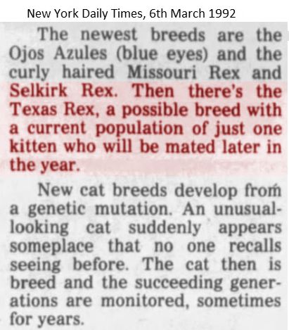 The Texas Rex was a single kitten born in 1991/2. There were plans to breed from this kitten, but nothing more was heard.