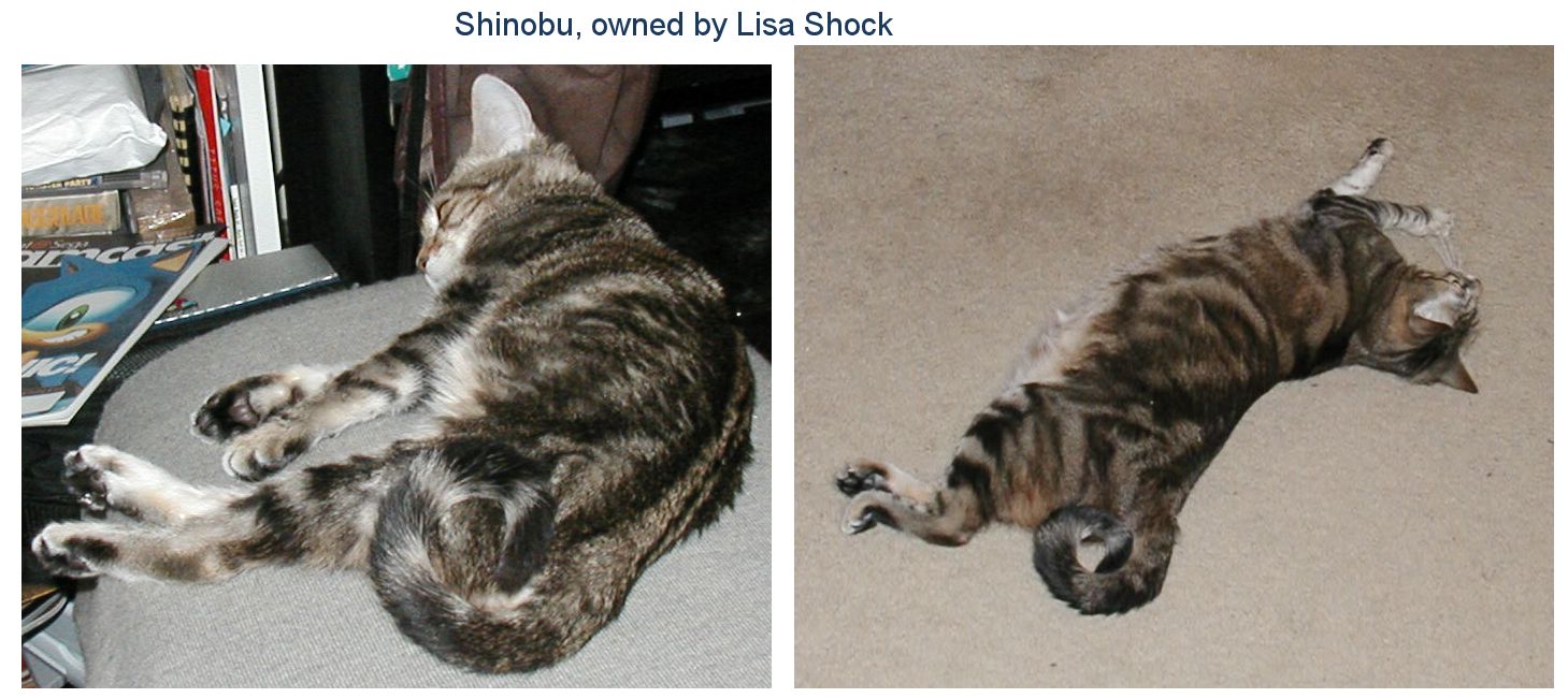 Mary Gerut rescued 2 brother kittens from the pound in Phoenix, Arizona (USA) in 2005. Holmes developed a curly tail at about 5-6 months of age. His brother's tail is normal.