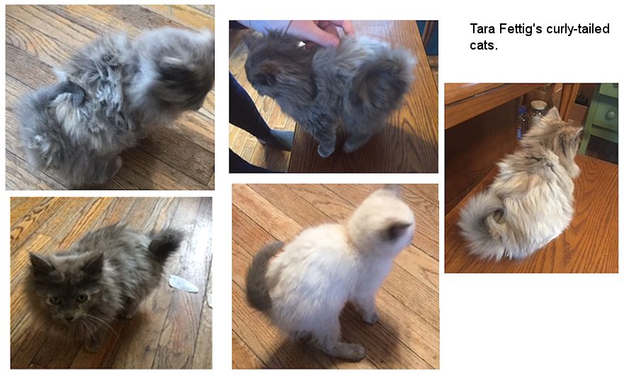 Curly-tailed cats are more common than originally realised as this page of photos shows. Initially believed to be restricted to only a handful of cats, visitors' photos show this charming and harmless trait has often been overlooked. Tails vary from looped, corkscrew and even tails that lie flat along the spine.