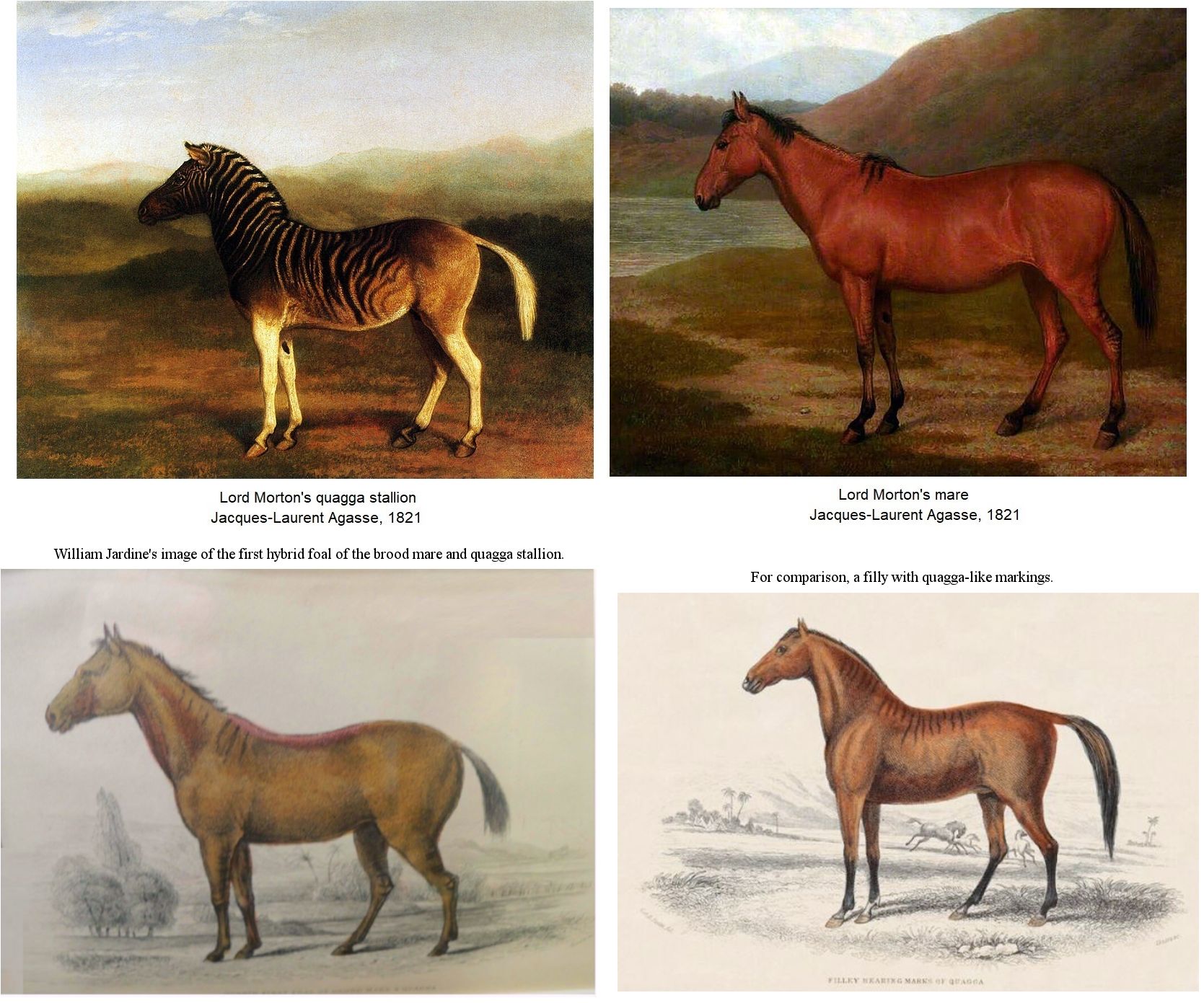 The first was purchased from a Mr. Thomson and lived in Regent's Park for less than three years from 25th November 1831 to 18th July 1834. Its mounted skin is at the Natural History Museum, South Kensington. (The whereabouts of its skeleton is unknown; there is a quagga skeleton at South Kensington, but it is from a different ZSL quagga to the mounted skin.)