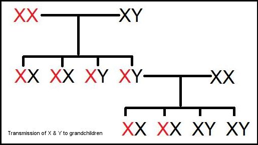 Sometimes chromosomes do not separate properly during meiosis I or chromatids do not separate properly during meiosis II. As a result the germ cells have either more or less genetic material than normal. A chromosome might be duplicated or absent. The most obvious instances in cats are when one of the sex chromosomes is duplicated or missing. Normal females are XX and normal males are XY. An XXY cat is a sterile male with a tendency to giantism or overweight; this is one cause of the uncommon tortoiseshell male cat. An XO (Turner syndrome) cat is a sterile undersized female, often with heart problems.