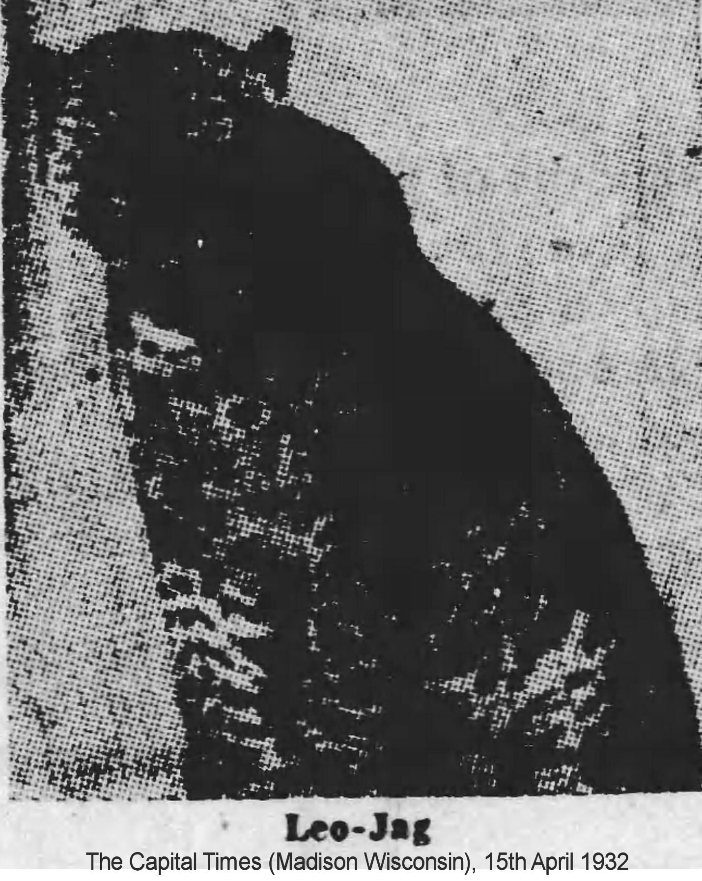 LEO-JAG, LAST OF VILAS ZOO LEOPARDS, DIES THURSDAY. The Capital Times (Madison, Wisconsin), 15th April 1932, pg 1.