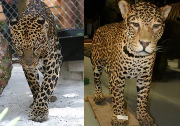 Although displayed as a hybrid of jaguar and lion, the exhibit below is very probably the famous Congolese Spotted Lion, being a 3-way hybrid bred from a jaguar/leopard female mated to a lion.