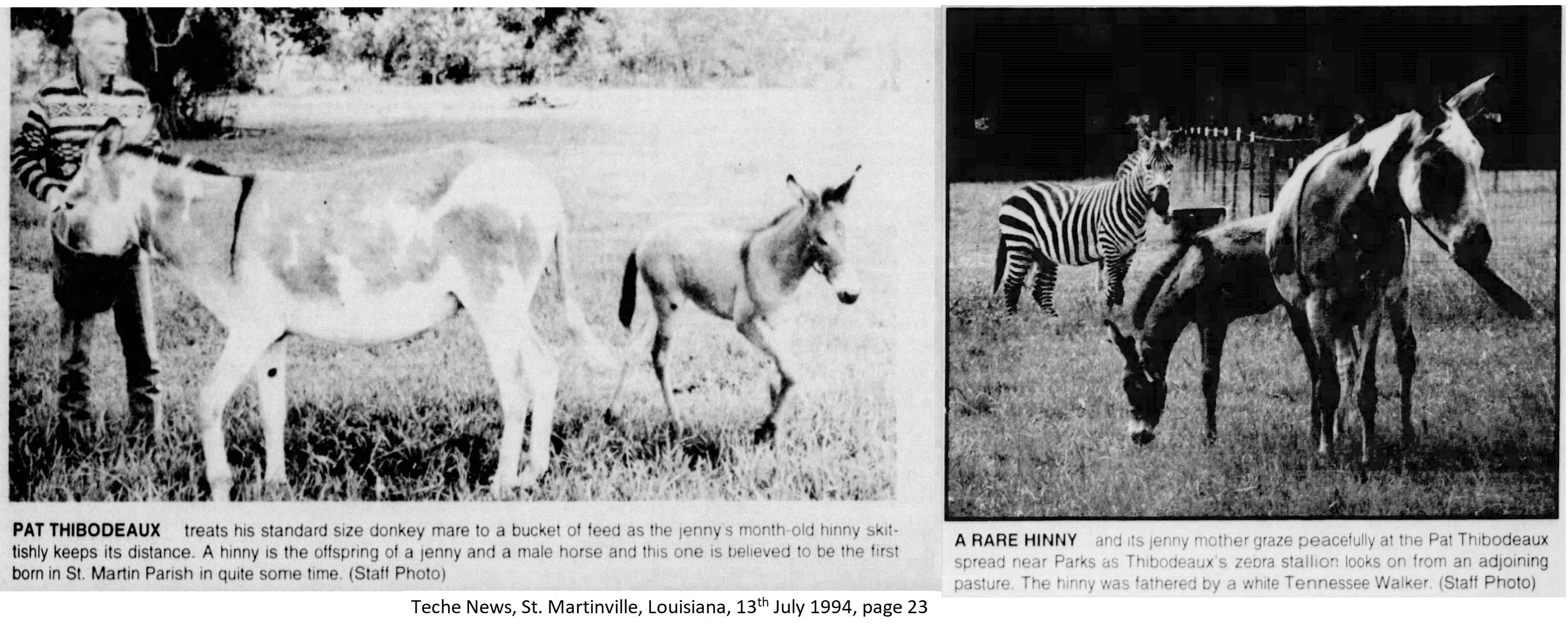 RARE HINNY BORN IN PARISH. Teche News, St. Martinville, Louisiana, 13th July 1994, page 23.