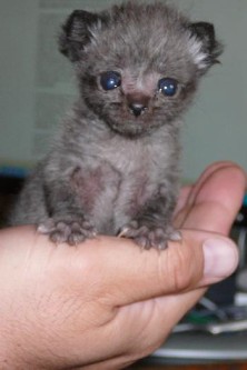 | Anopthalmia (eyelessness). This kitten also had hydrocephalus which causes the highly domed skull. |