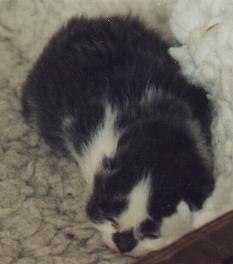 A deformity where the sternum (breast bone) presses into the thorax (chest cavity). It is sometimes known as "Funnel Chest" because the rib cage appears flattened and the breastbone collapses inwards as the kitten breathes. Mild pectus may be barely noticeable (unless the chest wall is palpated) and the kitten feeds as normal. Serious cases cause chest compression, reduced lung capacity, breathing difficulties and lethargy. The reduced oxygen supply causes poor growth and the kitten tires easily. In serious cases the kitten cannot suckle properly and becomes dehydrated and debilitated. An X-ray can determine the exact severity of the pectus. Often, pectus corrects itself as the kitten grows, but the kitten will need some supportive treatment. It must be tube fed and must be encouraged to keep pressure off of the chest e.g. to sleep or lie on its back or side, not on its front. If it does show a preference for lying on its front, resting it on a suitably shaped small soft pillow (or even a soft toy!) can help its breathing.