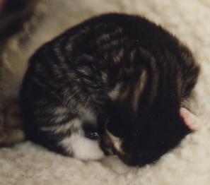 Either due to conditions in the womb preventing the limbs from being exercised or due to a weak kitten not exercising hind limbs after birth. With Luxating Patella, the affected leg(s) either stick out in a rigid position due to the kneecap slipping and locking the leg rigid. With twisted limbs, the limbs are curled under the kitten in a "lotus" yoga position. With a kneecap problem, manipulate the kneecap into position (usually a job for the veterinarian) and immobilise the leg in the correct position with surgical tape, strapping it to the body for 7 - 8 days to keep it immobilised. Do not cover the toes - you must check the paws and toes regularly for circulation.