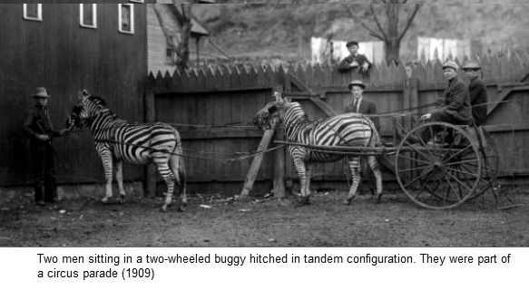 Because of their resemblance to the familiar horse, there has always been great interest in taming and training zebras as riding and harness animals. In the 1760s, French naturalist Buffon belived that zebras could replace horses and there were rumours in Paris that the Dutch had already trained a team of zebras to pull a cart. Eccentric aristocrats around the world had zebr-carts at various times in the 19th Century. These photos are from the late 19th century and early 20th century.