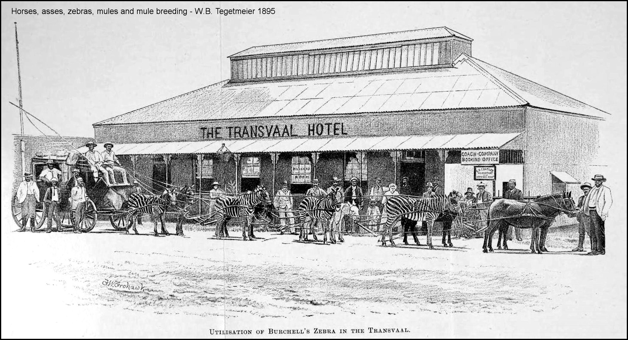 Our present domesticated animals can be counted on the fingers of one hand almost, and surely some of those who are blessed with the time and money to try experiments might reclaim and preserve some few of the many wild animals that are still left to us before it is too late. If the quagga be extinct, however, our readers will be pleased to bear that an effort is being made in the Transvaal to domesticate and use its near congener, the zebra, for purposes of draught. On hearing that Messrs Zeedesberg , the coach contractors, who run passengers and mails from Pretoria in the Transvaal to Fort Tuli in Mashonaland, had been successful in their efforts in training the zebra, I determined to make full inquires when next in Pretoria.