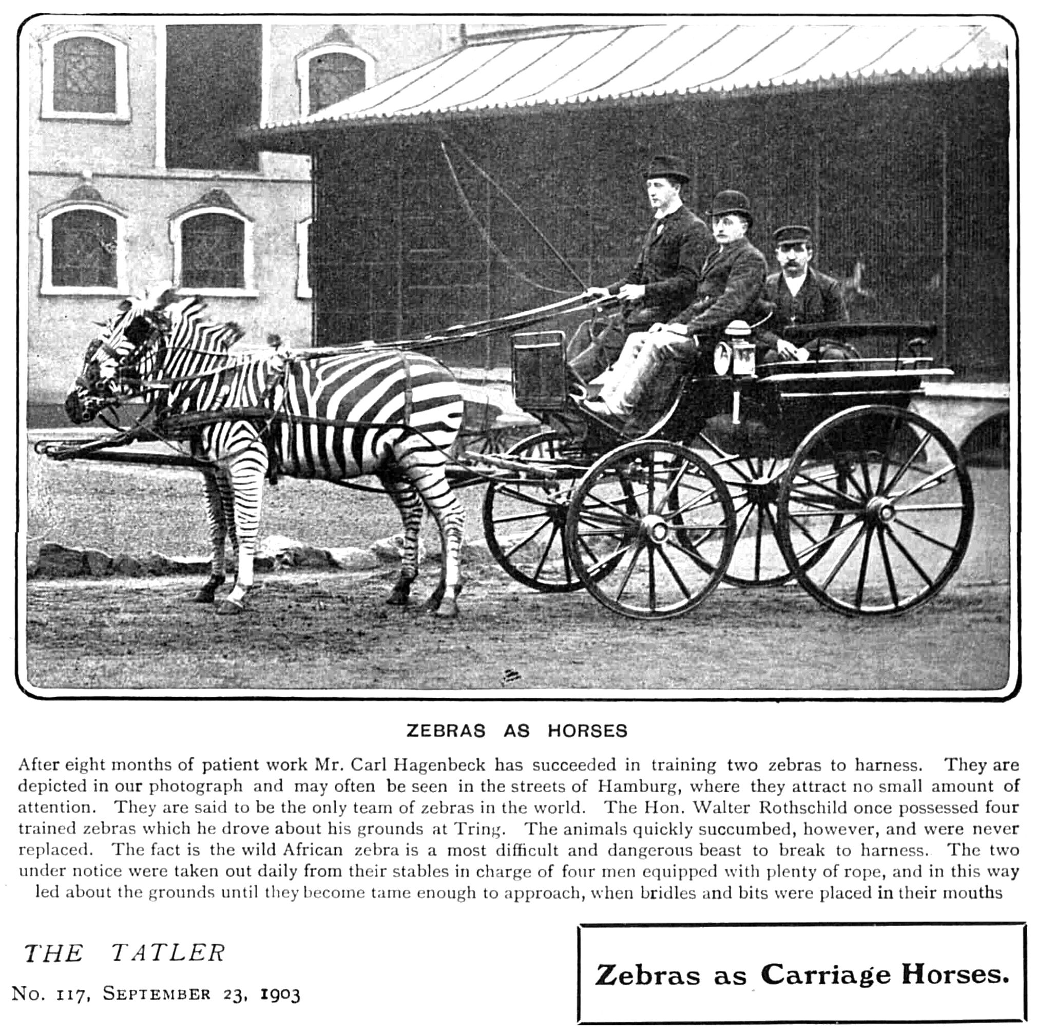 In the late 19th century, it was fashionable to use zebras where one would normally use a horse or pony. Above is Lord Walter Rothschild who had a penchant for harnessing zebras.