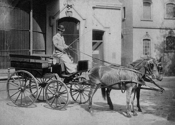 The Baron of Paran was born in the Rio de Janeiro province in 1847 and inherited the family s estate Fazenda do Lordello located in Porto Novo. He also successfully developed the zebroid and here is a photo of him with a "victoria" buggy drawn by zebras Canon and Carabine. These zebra stallions had been bought in 1892 from the Paris Jardin d'Acclimatation for the Baron's zebroid-breeding programme. Later on, some of the Baron's zebroids were exported to Paris and could be seen pulling carriages.