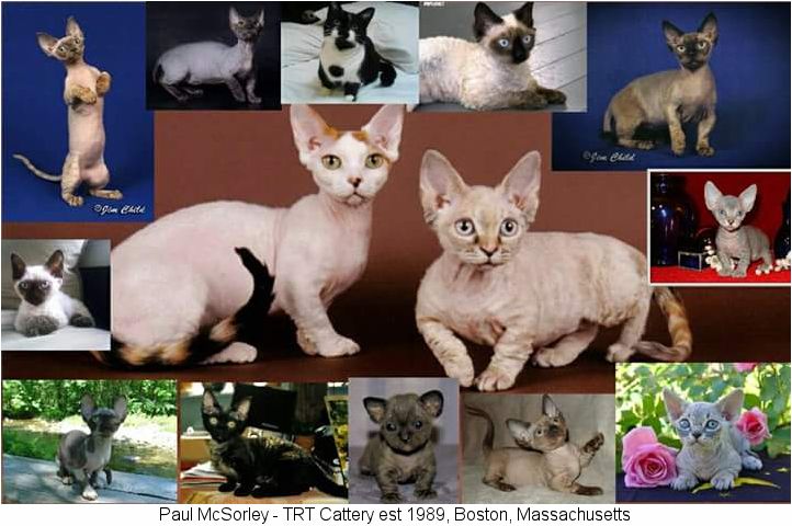 The Minskin, developed by Paul McSorley, combines the Munchkin's short legs with the Canadian Sphynx's hairlessness. Paul was one of the first few to work with Munchkins in the early 1990's, having already established a line of award winning American Burmese and a line of Tonkinese. The Burmese (the American Burmese being cobbier than the European Burmese), but not the Tonkinese, were crossed to Munchkins in developing the Minskin. The Sphynx and closely related Devon Rex (about 50/50 ratio) were used only to introduce their distinctive coat genes to produce the unique Minskin “fur points” that are the breed’s trademark. It was this unique "fur-pointed" coat description that was the “unique trait” required for recognition. While Sphynx are bald and Devon Rex are fully rex coated, the in-between kittens ("fuzzies") were either culled or homed as pets. The Minskin is therefore a mix of four breeds in the following order of importance: 1) Munchkin; 2) Burmese; 3) Devon Rex; 4) Canadian Sphynx.