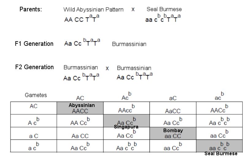 Tommy admitted that Burmese had been used in test matings to isolate the solid brown gene, but said none of the progeny of those matings had entered Singapura bloodlines. The Meadows had felt they could eliminate solid brown by test-mating the males. When this didn't eliminate the rogue gene, they also had to test-mate all of the females. Six additional cats were found to be carriers and eliminated from the breeding programme.